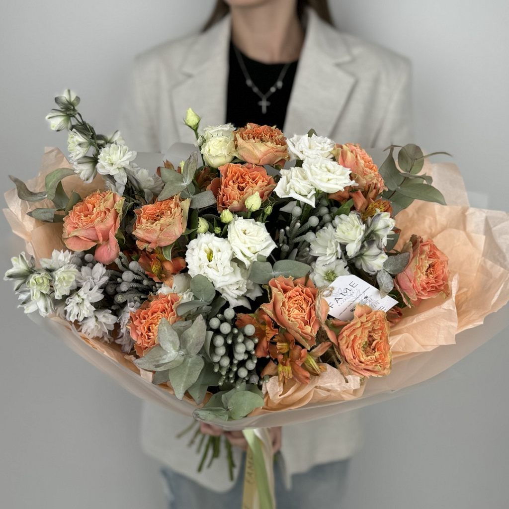 Букет, в который вложено много любви. Флористы студии FAME сделали его из самых свежих цветов, тщательно продумав состав. Теперь он готов удивить красотой своего получателя!