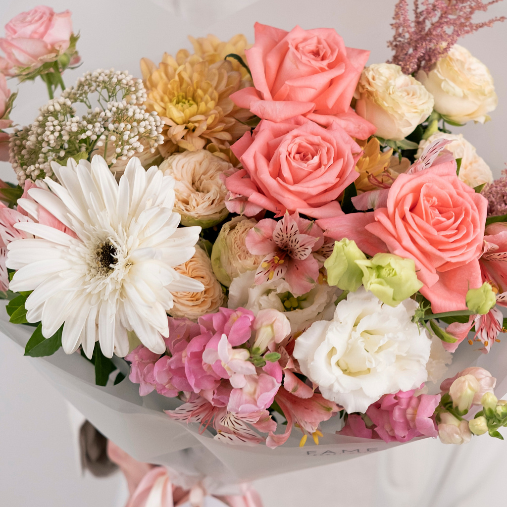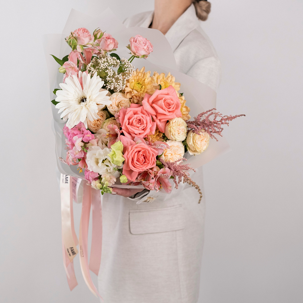 Букет, в который вложено много любви. Флористы студии FAME сделали его из самых свежих цветов, тщательно продумав состав. Теперь он готов удивить красотой своего получателя!