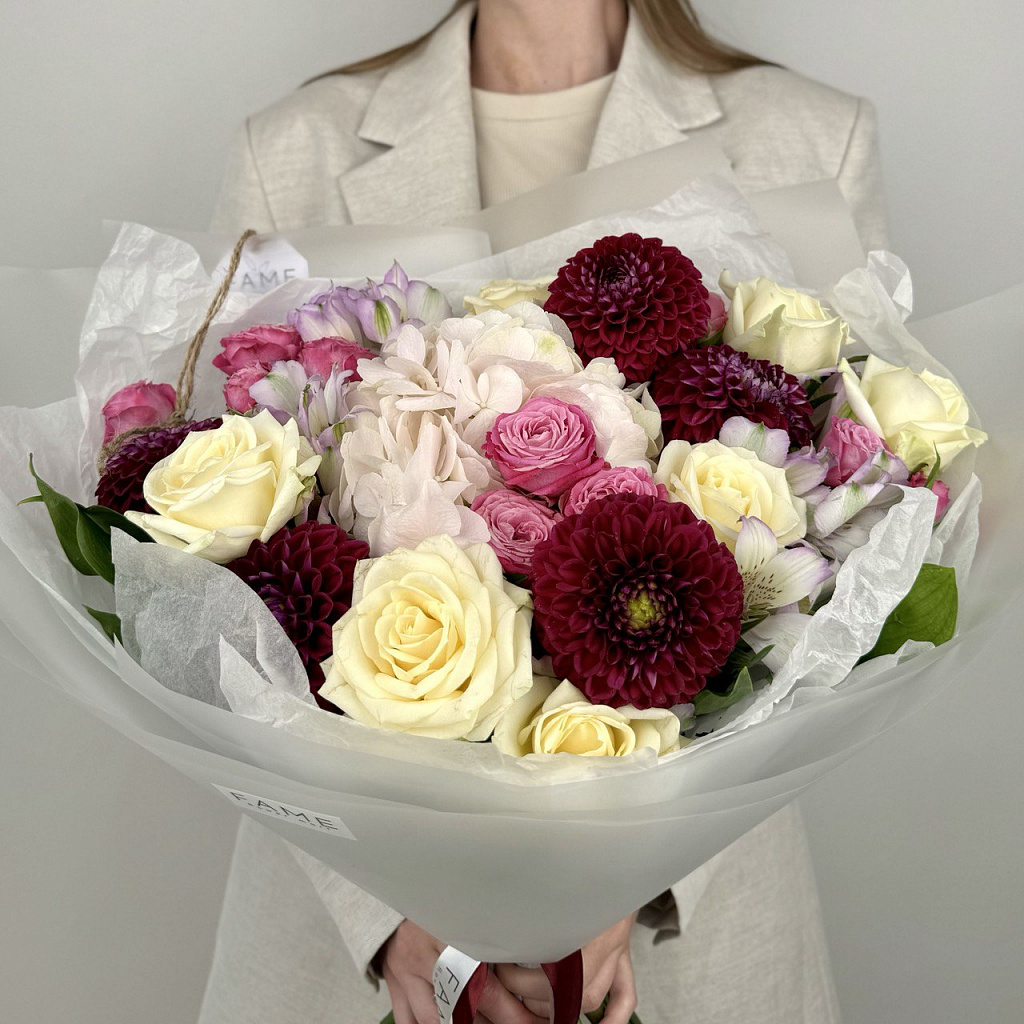 Букет, в который вложено много любви. Флористы студии FAME сделали его из самых свежих цветов, тщательно продумав состав. Теперь он готов удивить красотой своего получателя!