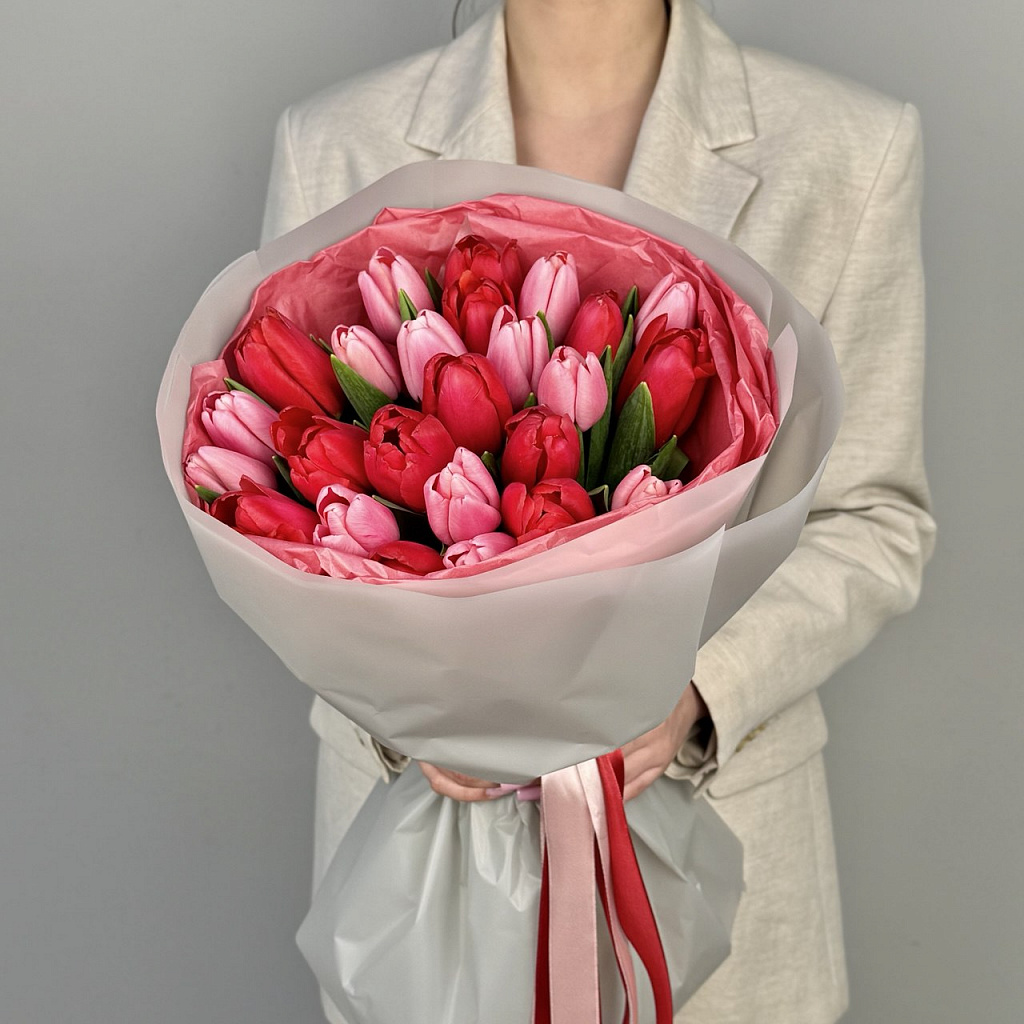 Микс розово-красных тюльпанов, 25 шт