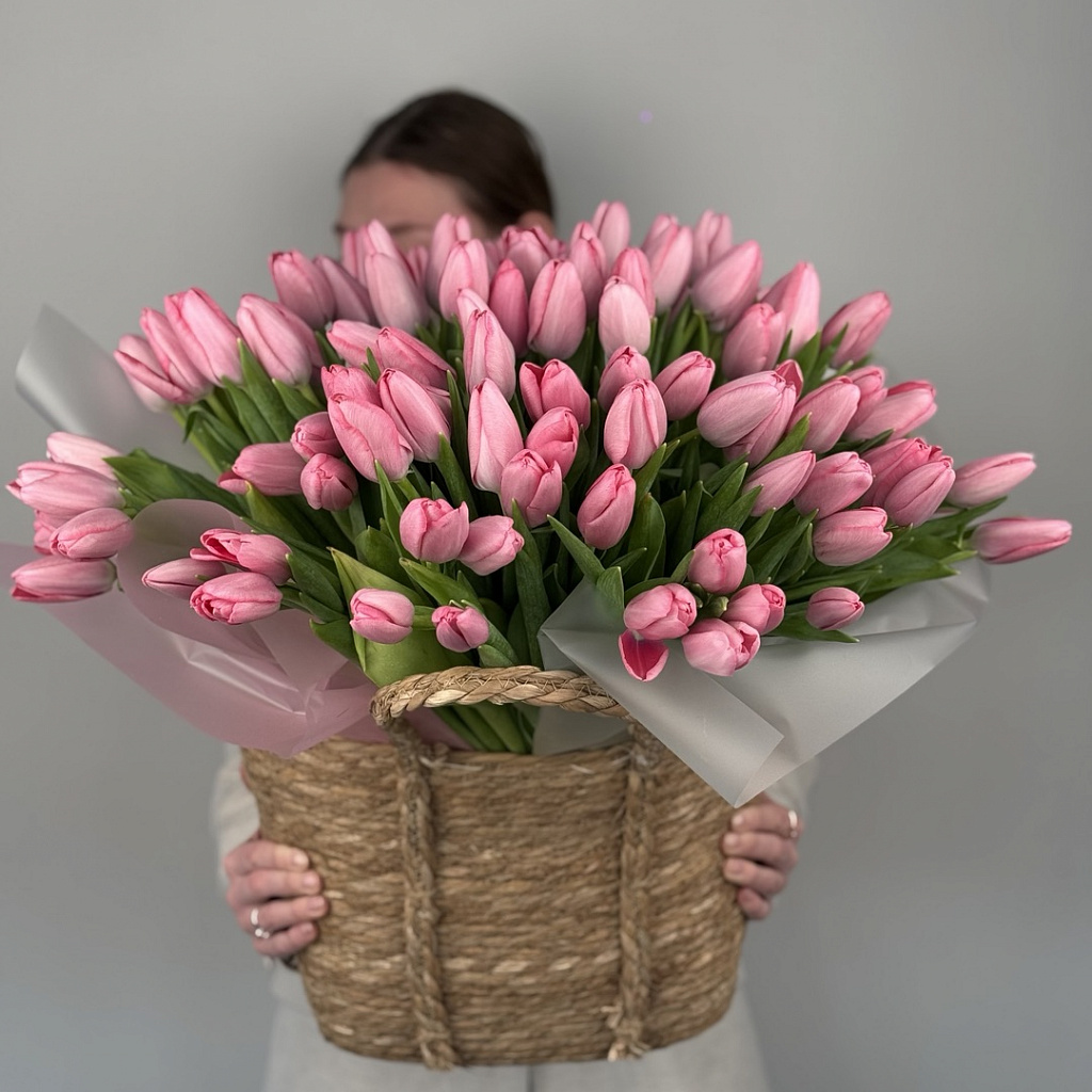 Тюльпан - 101 шт., Корзина малая (до 15 см) - 1 шт.