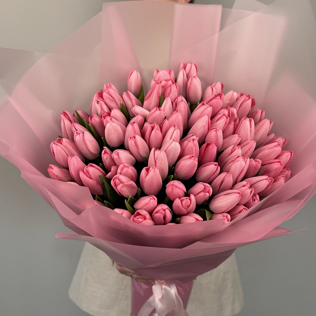 Тюльпан - 101 шт., Современная упаковка - 2 шт., Лента атласная - 2 шт.