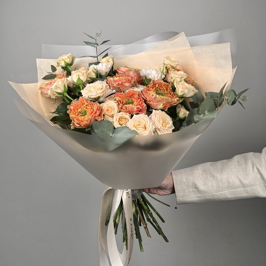 Букет, в который вложено много любви. Флористы студии FAME сделали его из самых свежих цветов, тщательно продумав состав. Теперь он готов удивить красотой своего получателя!