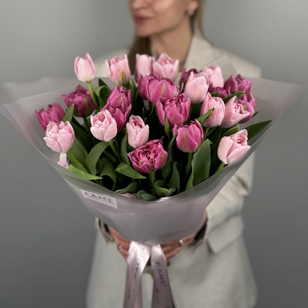 Тюльпан - 25 шт., Современная упаковка - 1 шт., Лента атласная - 1 шт.